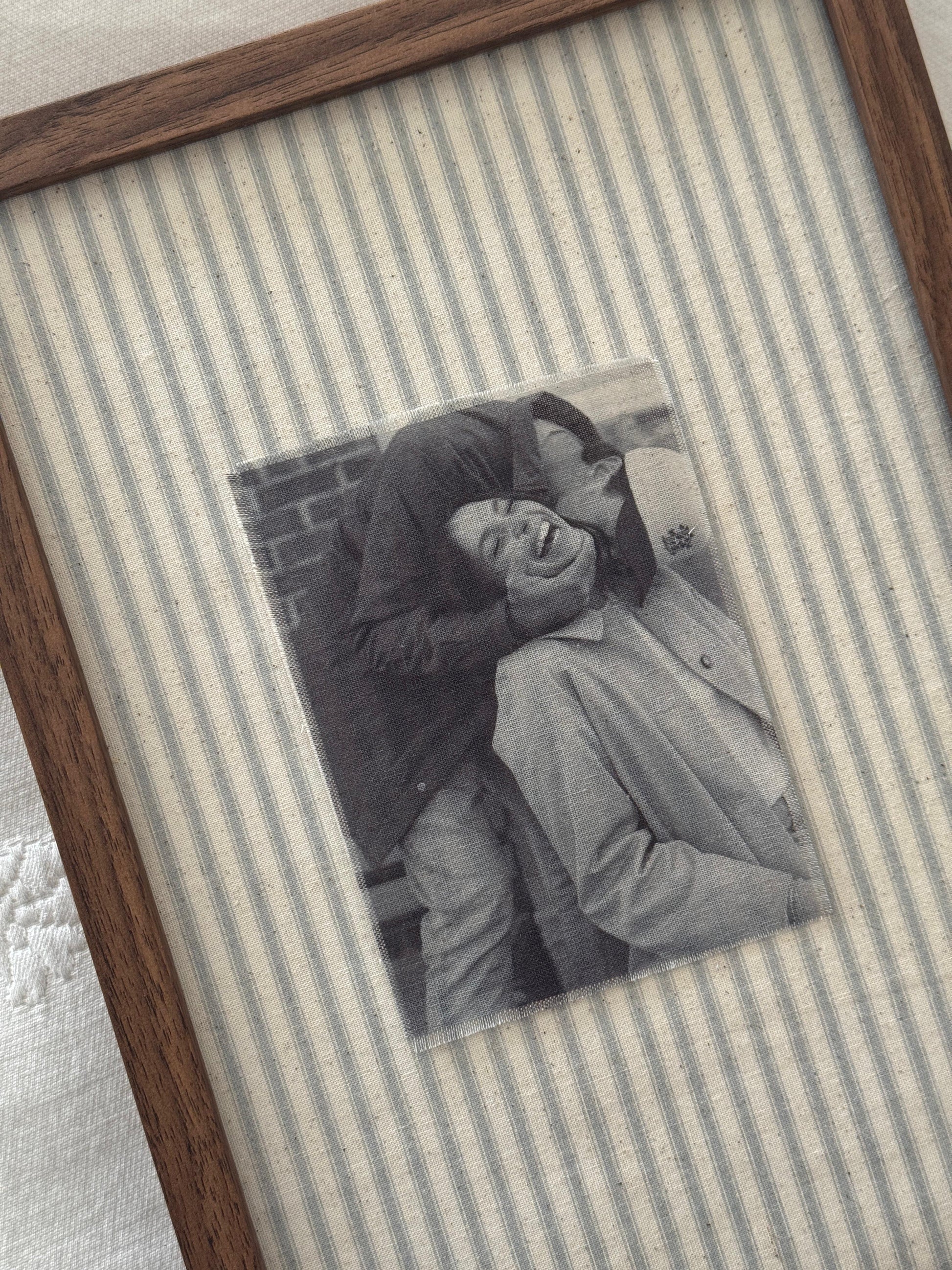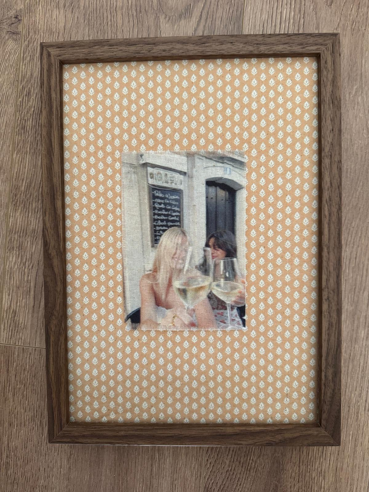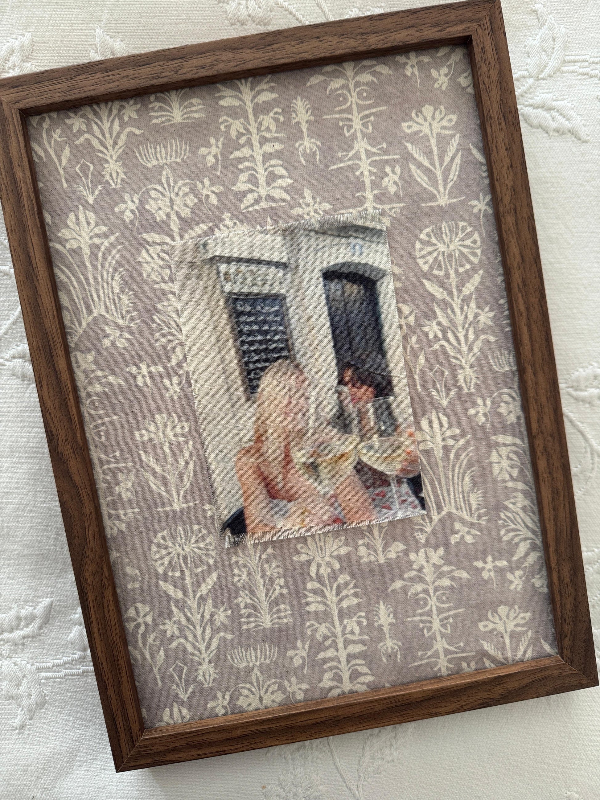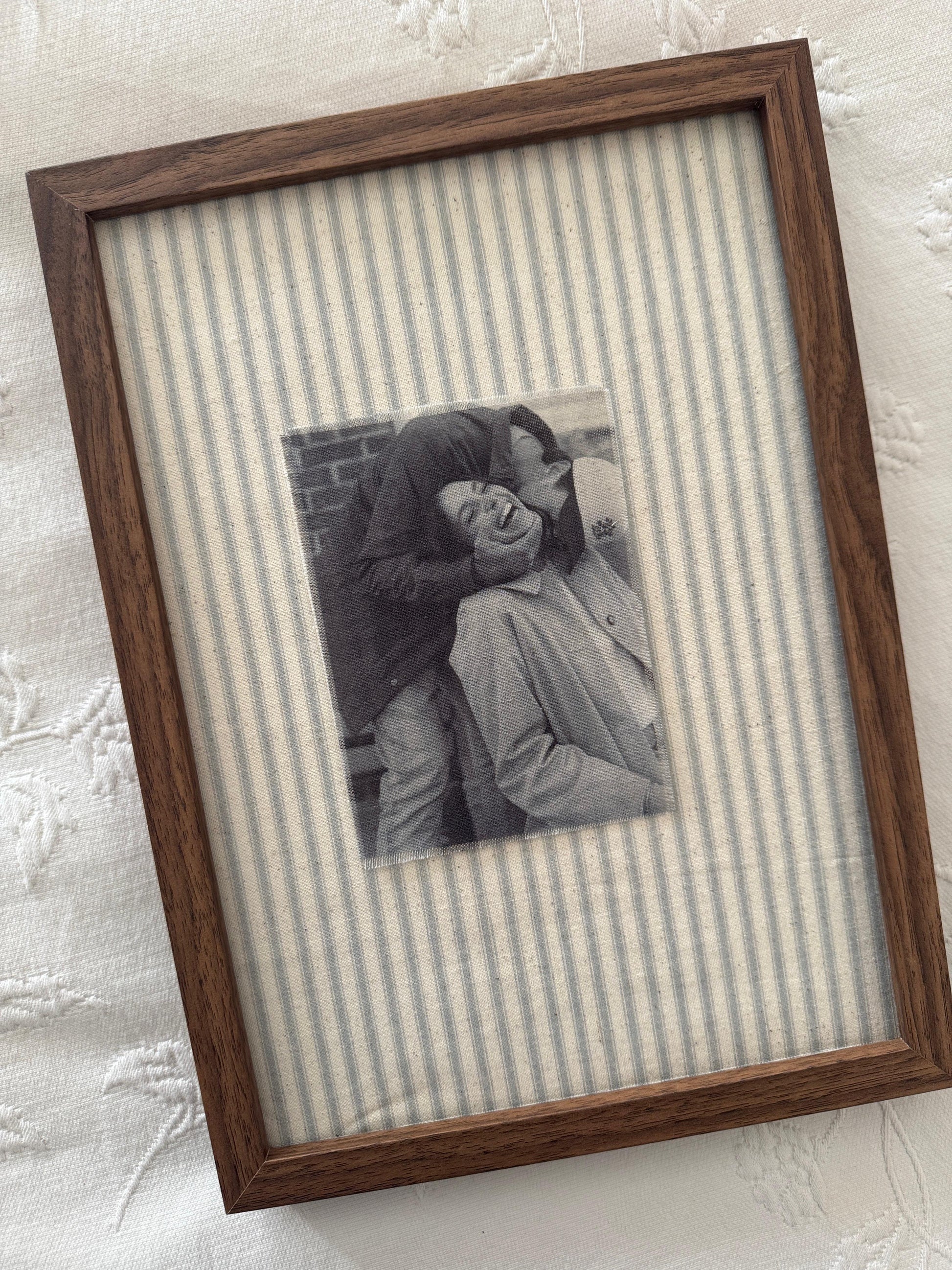 El revelado sobre tela diseñado a medida es la forma ideal de dar un nuevo sentido a tus fotos o imágenes favoritas. La impresión se realiza sobre una tela estampada de lino 100% y una foto de tela superpuesta también revelada en tela. Marco incluido.