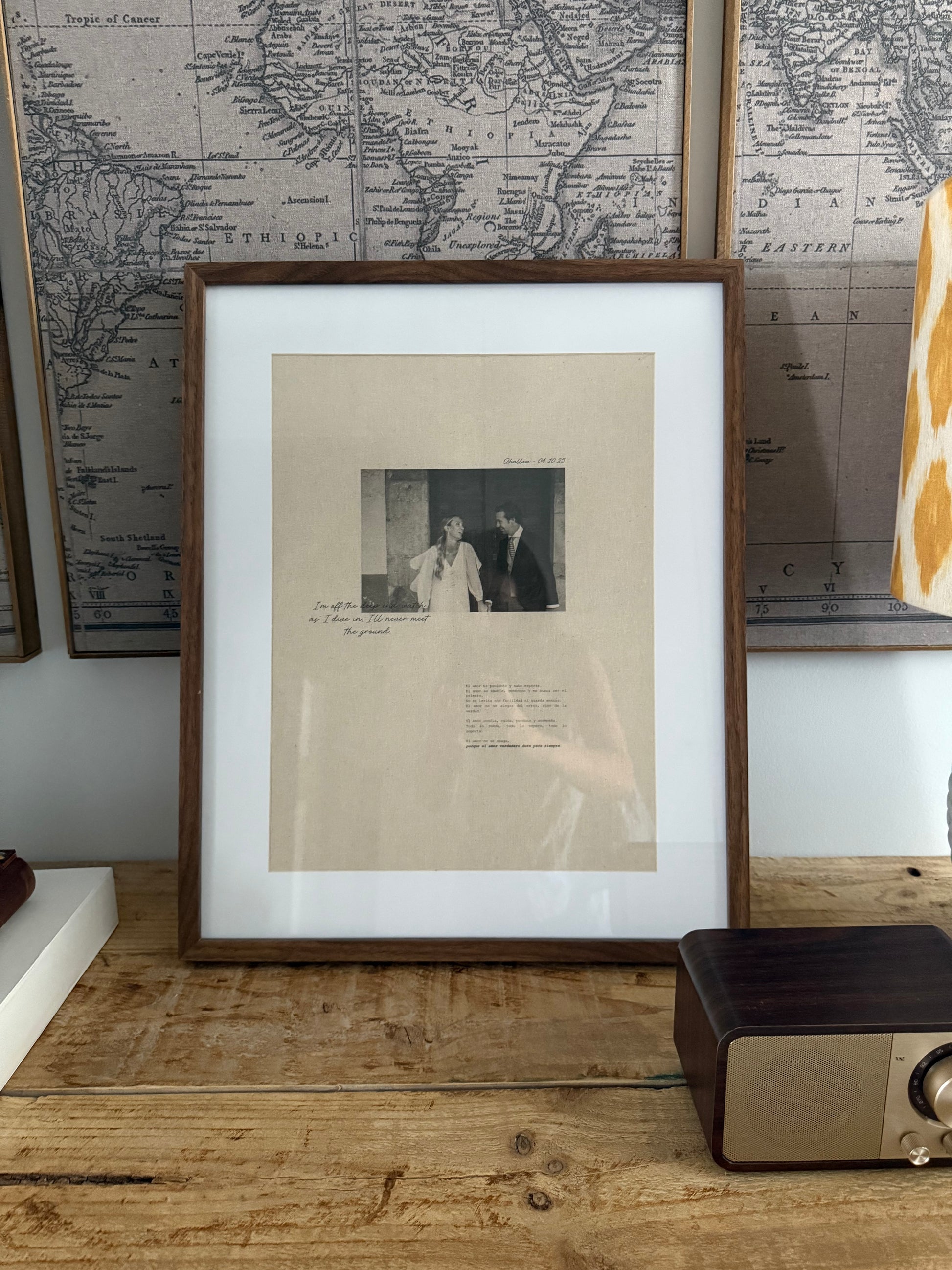La impresión se realiza sobre una tela tamaño A3 ofreciendo un acabado natural y refinado que destaca por su calidad. Incluye un marco de madera tamaño 40x50cm.